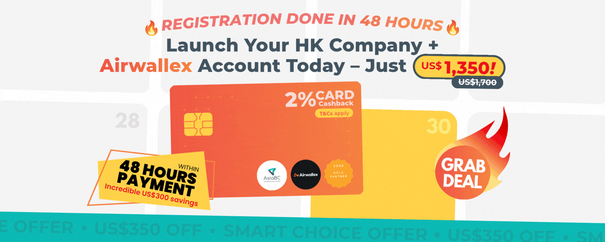 AsiaBC x Airwallex First-Ever Super Deal | Save US$300 NOW – GA AsiaBC x Airwallex First-Ever Super Deal | Save US$350 NOW - GA "*" indicates required fields Almost there! Upload 2 files now to unlock yourSuper Incorporation Deal + Airwallex Account. Full Name* Contact Email* Proposed Company Name* Business Nature* Are You a Shareholder? Yes No Passport Copy*Max. file size: 6 MB.Residential Address Proof*Max. file size: 6 MB.(Sample Here)Selfie with Your Face & PassportMax. file size: 6 MB.(Sample Here)Supplementary InformationHiddenGCLID CAPTCHAEmailThis field is for validation purposes and should be left unchanged.